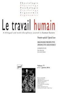 Prospective Ergonomics Vol. 77, 2014/1 - pagesPages 1 to 20Prospective Ergonomics: the Foundations and IssuesBy Éric Brangier, Jean-Marc RobertPages 21 to 38Generating Prospective Scenarios of Use in Innovation ProjectsBy Julien Nelson, Stéphanie Buisine, Améziane Aoussat, Claude GazoPages 39 to 62Designing a Pervasive Technology Environment for Home Care of Elderly: a Prospective Approach by Activity SystemsBy Marc-Éric Bobillier-Chaumon, Bruno Cuvillier, Christine Durif-Bruckert, Florence Cros, Mohini Vanhille, Salima BekkadjaPages 63 to 89Electric Vehicle and Management of its Autonomy: a Prospective Approach Anchored in a Real-life ExperienceBy Claudine Nguyen, Béatrice CahourPages 91 to 102Toward Prospective Reasoning in Design: An Essay on Relationships among Designers’ Reasoning, Business Strategies, and InnovationBy André Liem