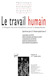 Analysing activity: what endures and what is new? L’analyse de l’activité : quelles constantes et quels renouvellements ? Numéro spécial (tome 2)Vol. 79, 2016/3 - pagesPages 193 à 208Activity analysis: not what it was!Par Françoise DarsesPages 209 à 232Activity, time and itineraries: for the integration of multiple times in the ergonomic analysis of workPar Corinne GaudartPages 233 à 258The challenges of activity analysis for training objectivesPar Germain Poizat, Marc Durand, Jacques TheureauPages 259 à 284Analyzing lived experience of activityPar Béatrice Cahour, Pascal Salembier, Moustafa ZouinarPages 285 à 305Eliciting activity: a method of analysis at the service of discussionPar Laurent Van Belleghem