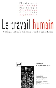 Varia Vol. 80, 2017/3 - pagesPages 241 à 258Soutien organisationnel, solidarités sociales et engagement des employés : le rôle modérateur de la pauvreté laborieusePar Danny Tungisa Kapela, Sabine PohlPages 259 à 284Enrichir le retour d’expérience par les espaces de débat : l’exemple d’une recherche-intervention chez un exploitant de tunnels routiersPar Christelle Casse, Sandrine CarolyPages 285 à 306Influence of visual features on the ability to locate information on a screen: recommendations for seniorPar Caroline Moget, Guillaume Frutoso, Édith Galy, Guillaume Lepicard, Nathalie BonnardelPages 307 à 330Eye movement analysis in dynamic scenes: presentation and application of different methods in bend taking during car drivingPar Jordan Navarro, Emanuelle Reynaud, Catherine Gabaude